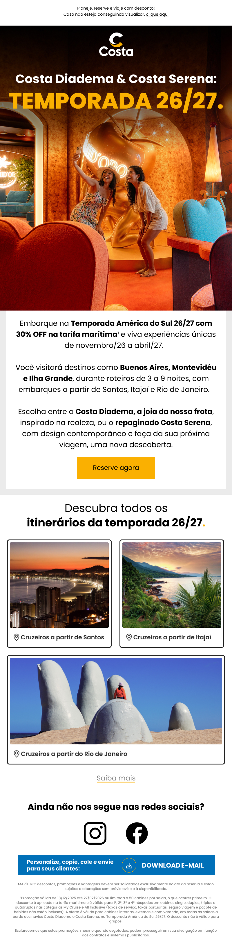 Costa Serena, na Temporada América do Sul 26/27. O desconto não é válido