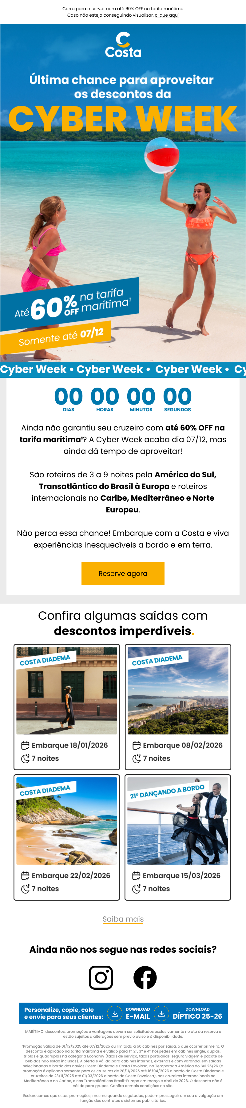 Diadema e Costa Favolosa, na Temporada América do Sul 25/26 (a promoção