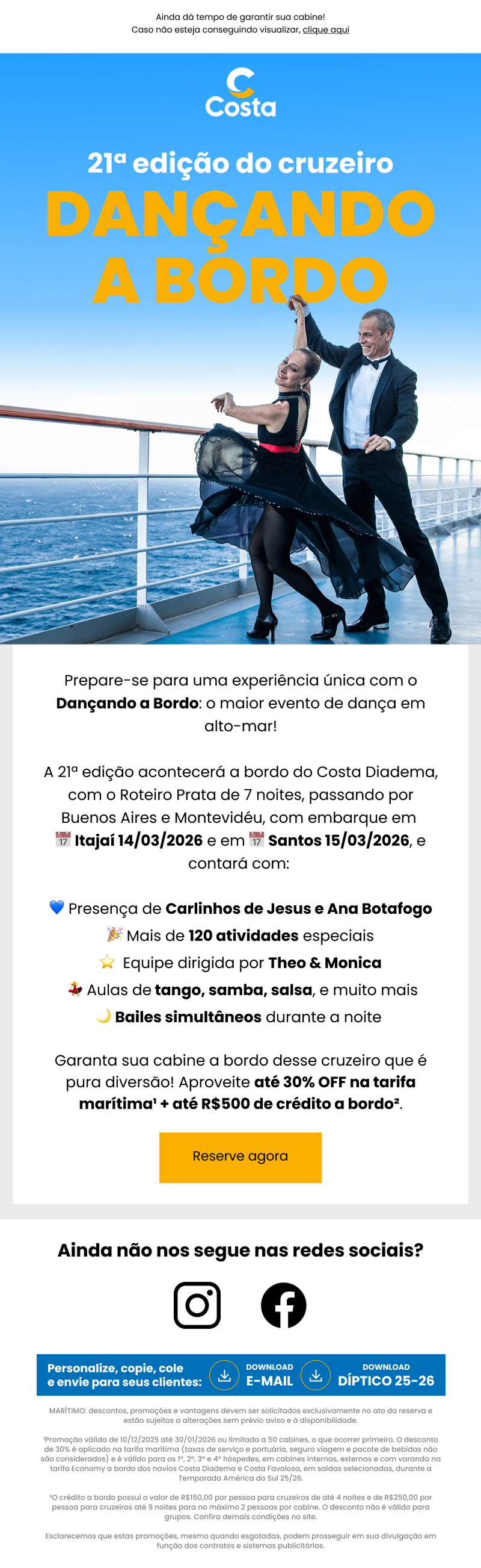 A 21ª edição acontecerá a bordo do Costa Diadema, com o Roteiro