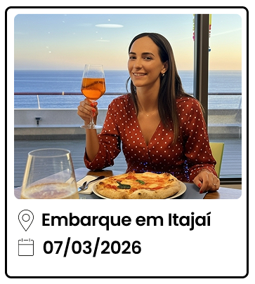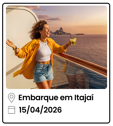Tudo isso e muito mais, você encontra a bordo dos navios Costa Diadema e Costa Favolosa! Aproveite para garantir sua viagem com até 40% OFF na tarifa marítima¹ e embarque ainda na Temporada América do Sul 25/26.