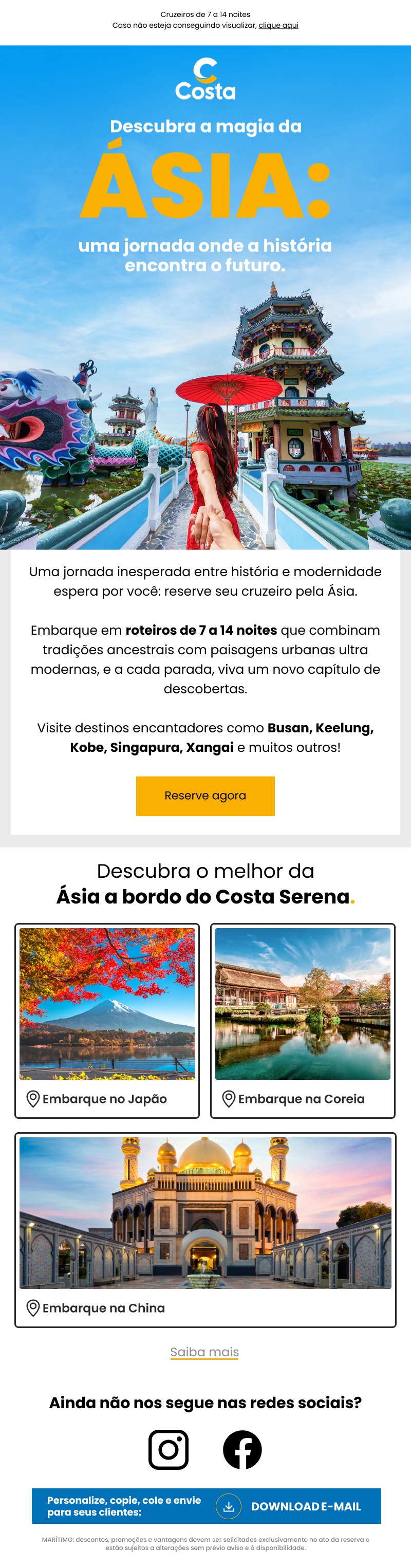 da Ásia a bordo do Costa Serena. |