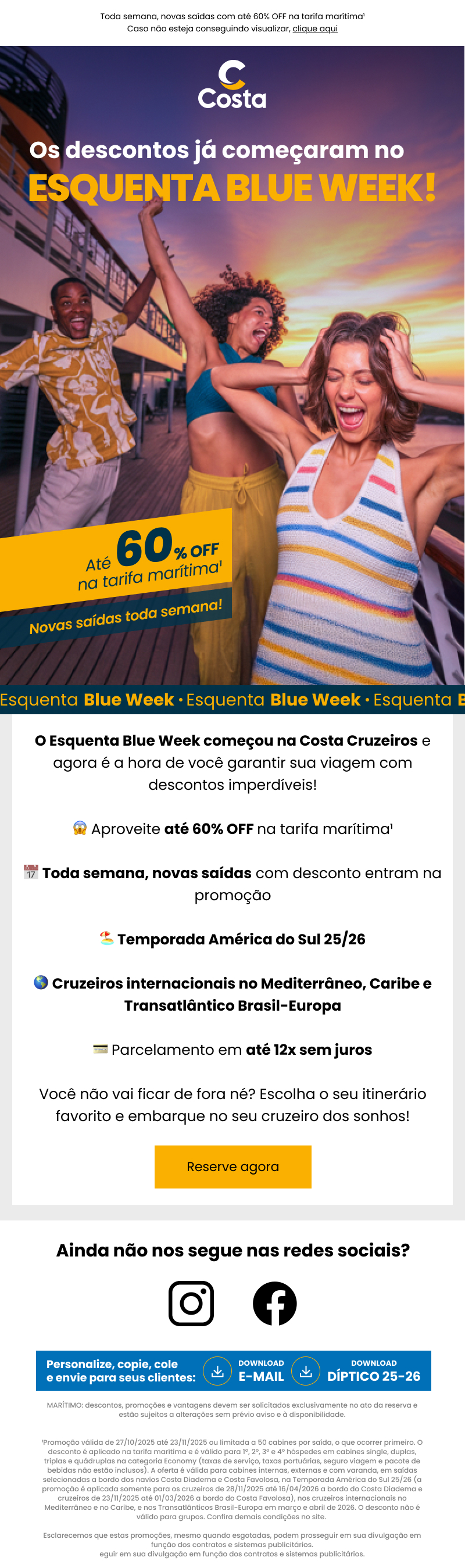 Diadema e Costa Favolosa, na Temporada América do Sul 25/26 (a promoção
